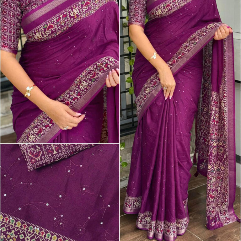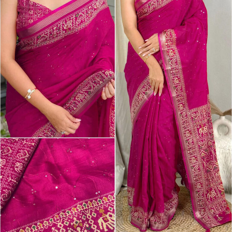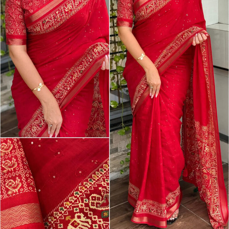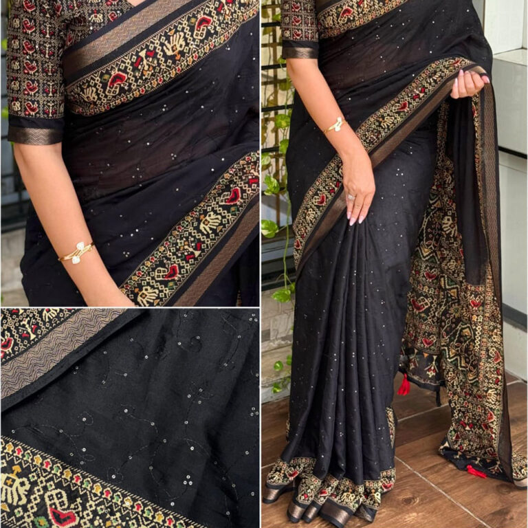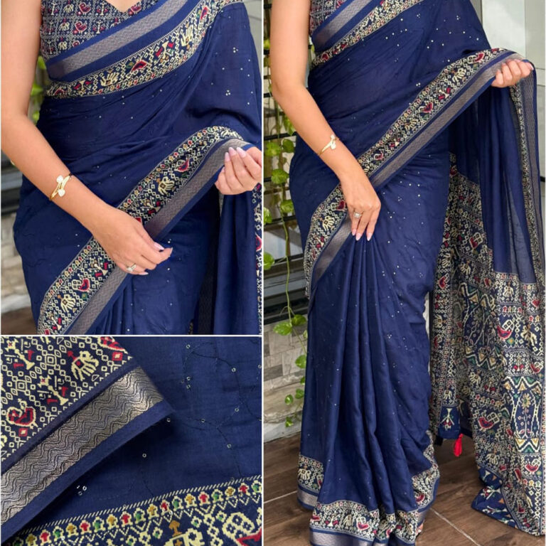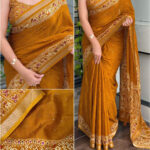 Elevate your ethnic wardrobe with this elegant Ajrakha digital print saree, beautifully enhanced with intricate thread and sequin work. Designed to blend traditional charm with modern style, this saree features a gracefully worked border and an embellished pallu, making it perfect for festive occasions, parties, and special gatherings.