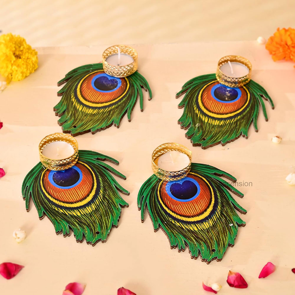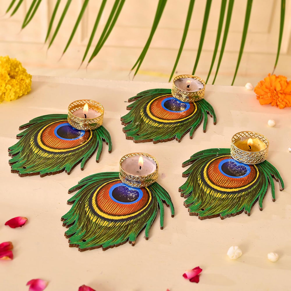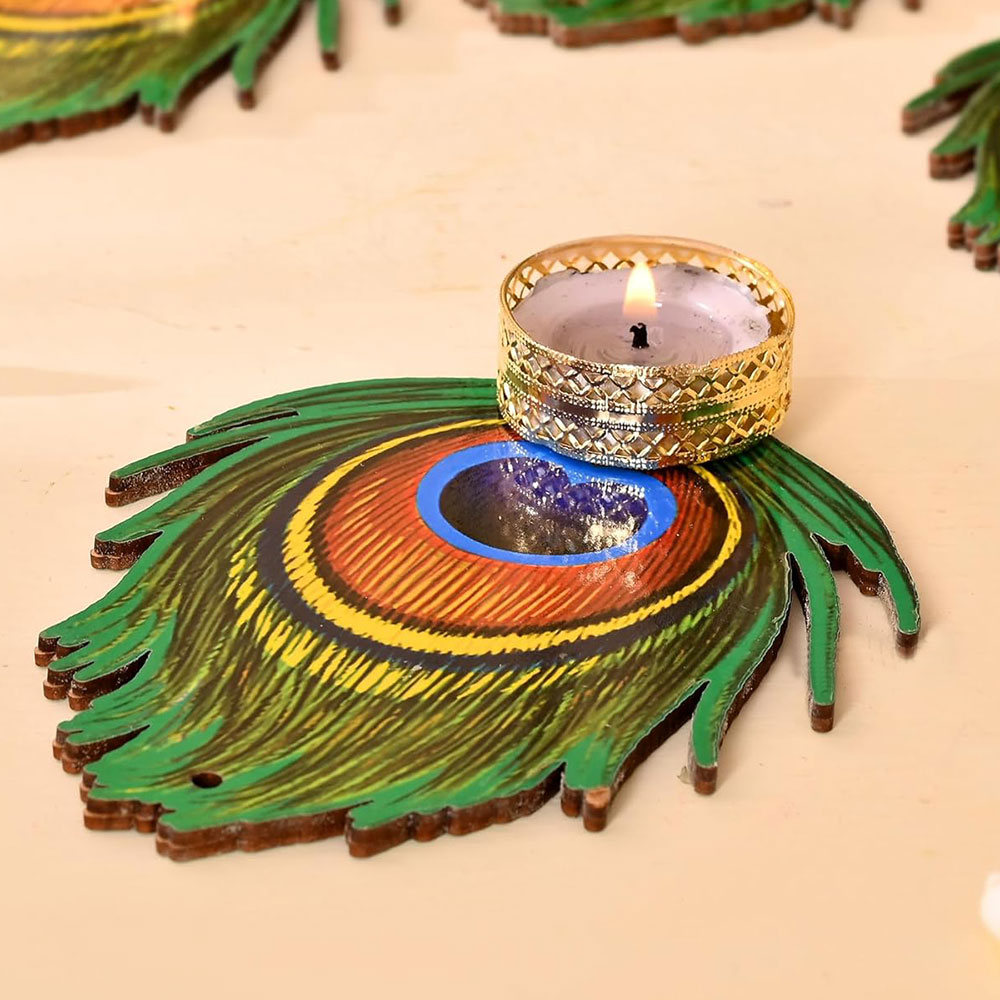Handcrafted Rangoli Set with Diya Holders & with Wax Candle, Traditional Velvet Base Floor Decoration for Diwali, Wedding, Navratri, Pooja Room, Housewarming & Festival Décor