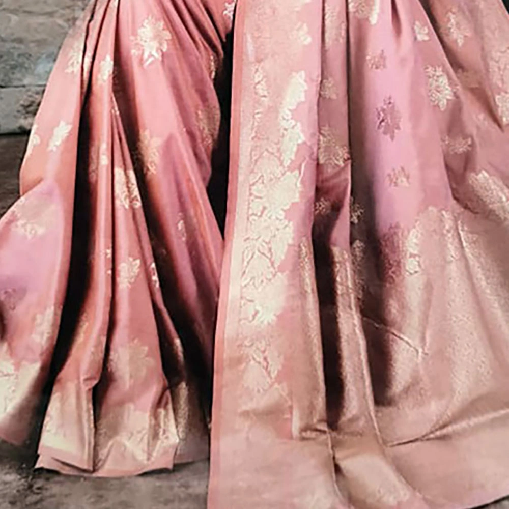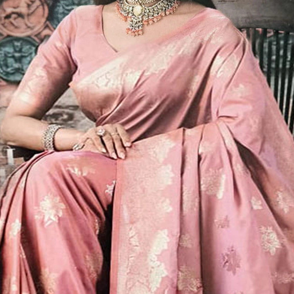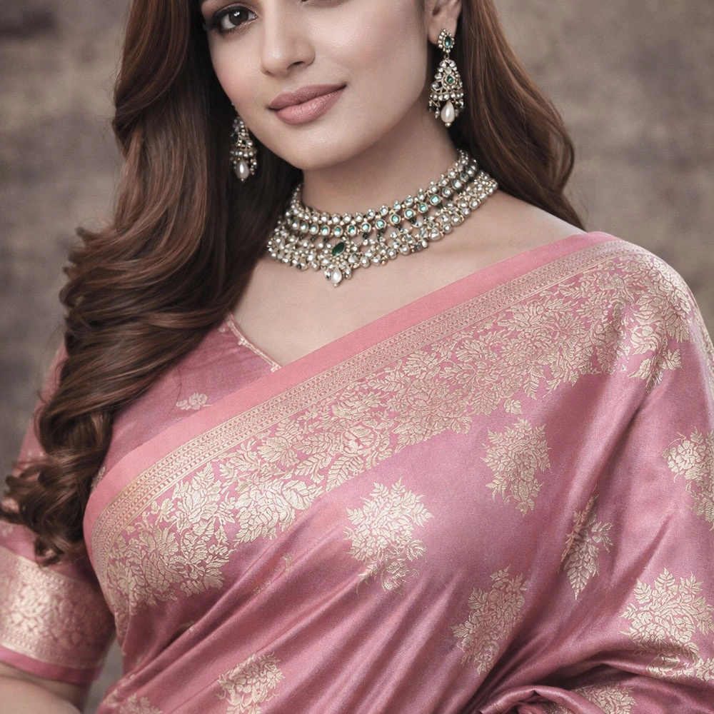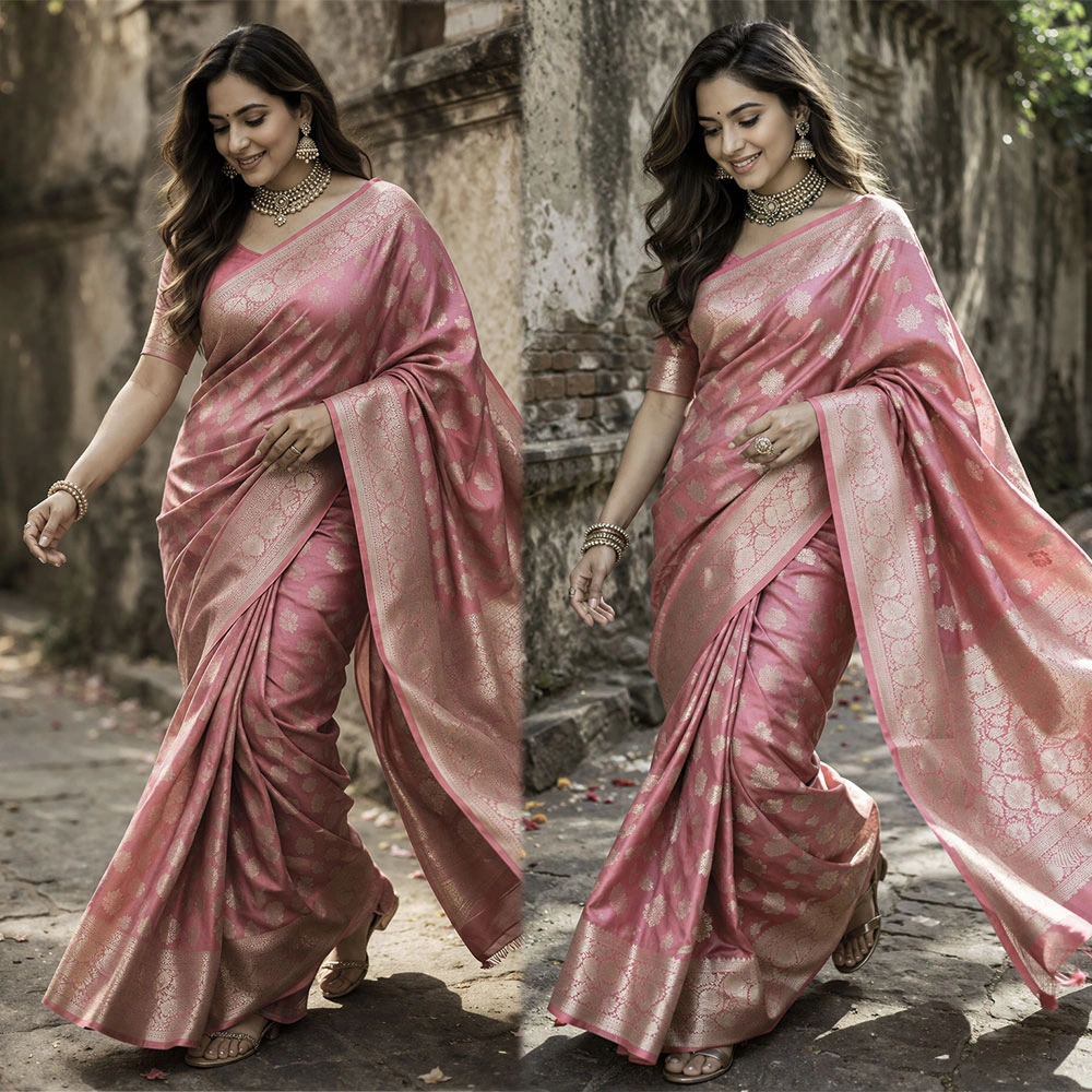 Pushti24 offers authentic pure dhoop chaon light pink silk sarees, expertly crafted by experienced weavers and artisans, ensuring superior quality, genuine fabric, and timeless elegance for our valued customers.