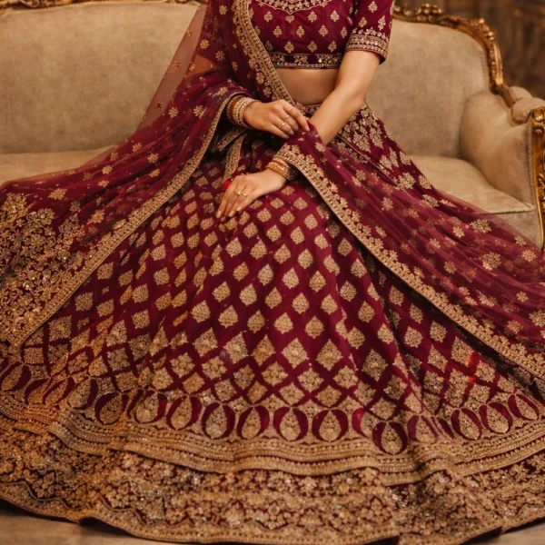 Work :Lehenga – Blouse – Resham Work, Sequins, Thread Work, Dupatta – Resham Work, Sequins, Thread Work